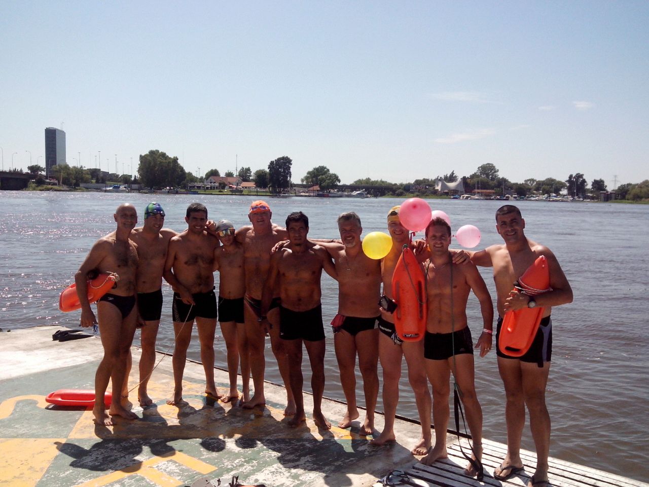 Erase una vez el año 2012, a mediados de junio me hice socio del Club Regatas, cuando entre al "entrañable y mítico" club, después de aproximadamente 40 años, confieso que casi se me cae una lagrima........, bue a nadar. Encontre un guardavidas ( Pablo A.), que al consultarlo sobre técnicas de nado, de a poco se convirtió en mi "personal-water". Habia folletería en el algunos lugares del club con el título "10N", correspondía al primer cruce de la Laguna después del "Invierno", me explicaron, ah y que a posterior del cruce había asado ( un combo muy seductor). Llego el día, el proyecto de nadador ( o sea yo) asustado, como antes de un examen, alguien me dijo "para sentirte más seguro usa las patas", y bue al agua; Con un grupo de gente que hasta ahí conocía a algunos nada más: uno Ercilio y otros de vista, seguí al grupo sobre todo al que tenía el torpedo ( Enrique), descubrí que llevaba también patas y manoplas, si habia viento o no ni me enteré, solo se que tenía que crusar, y lo logré, luego fuimos hasta los pilares y regresamos, eso si me acuerdo,"detrás del bote y por el medio". A medida que nadaba se me iba pasando el susto y llegué a la balsa. TODO UN LOGRO PARA MÍ. Luego pasamos a otra etapa del evento "el asado", y para mí sorpresa me encontré, con un grupo de gente con grandes valores humanos, que me permitieron ser parte de él (hasta ahora con patas, ya me las voy a sacar), ah el asado estuvo "aldente".